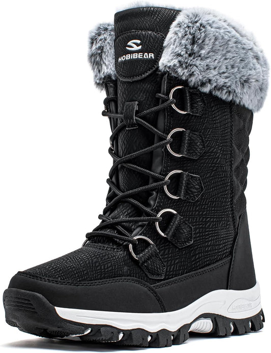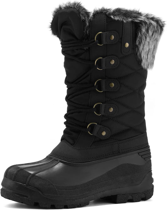 Bottes de neige pour femmes Bottes d'hiver mi-mollet imperméables isolées en fausse fourrure