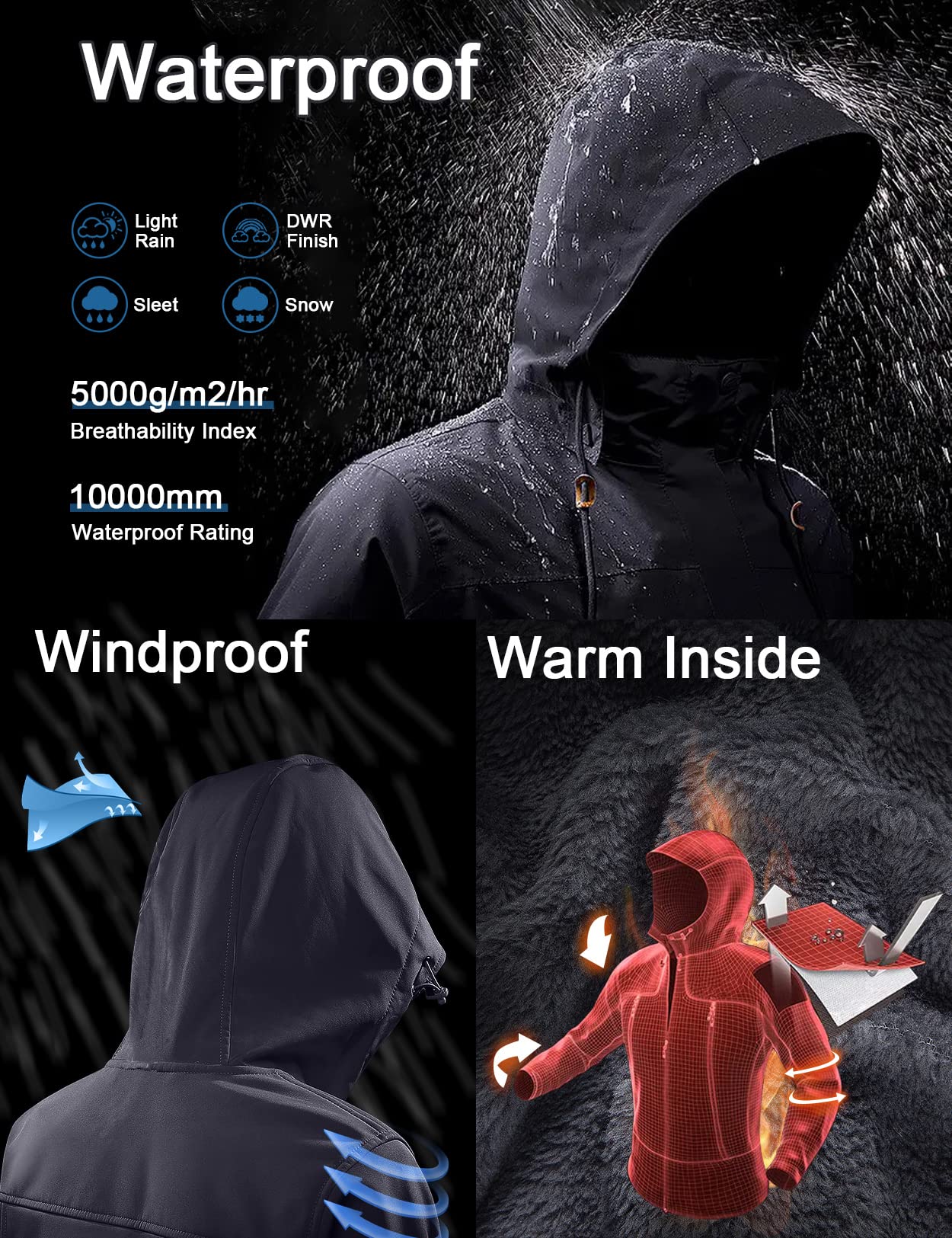 - Imperméable et à séchage rapide: enduit hydrofuge professionnel, le niveau imperméable est 10000mm/H2O et toutes les fermetures à glissière sont de conception étanche. Vous ne craindrez pas de vous mouiller pendant le ski, le snowboard ou les jours de pluie. Notre veste de pluie imperméable vous offrira une protection efficace contre les intempéries orageuses ou brumeuses, gardant votre corps au sec et au chaud toute la journée.