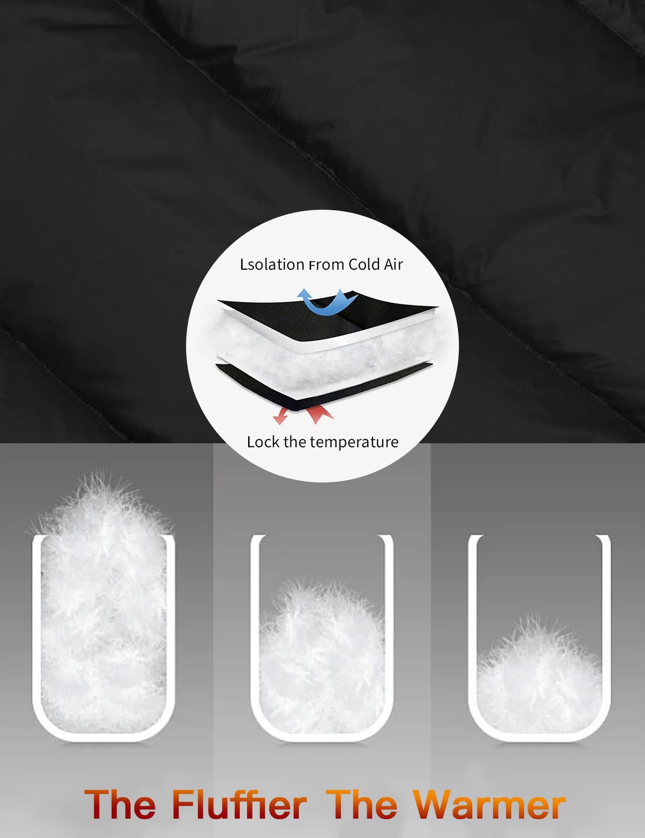 Femmes hiver chaud manches longues Zip devant court bouffant veste bouffante avec poches (noir-L)