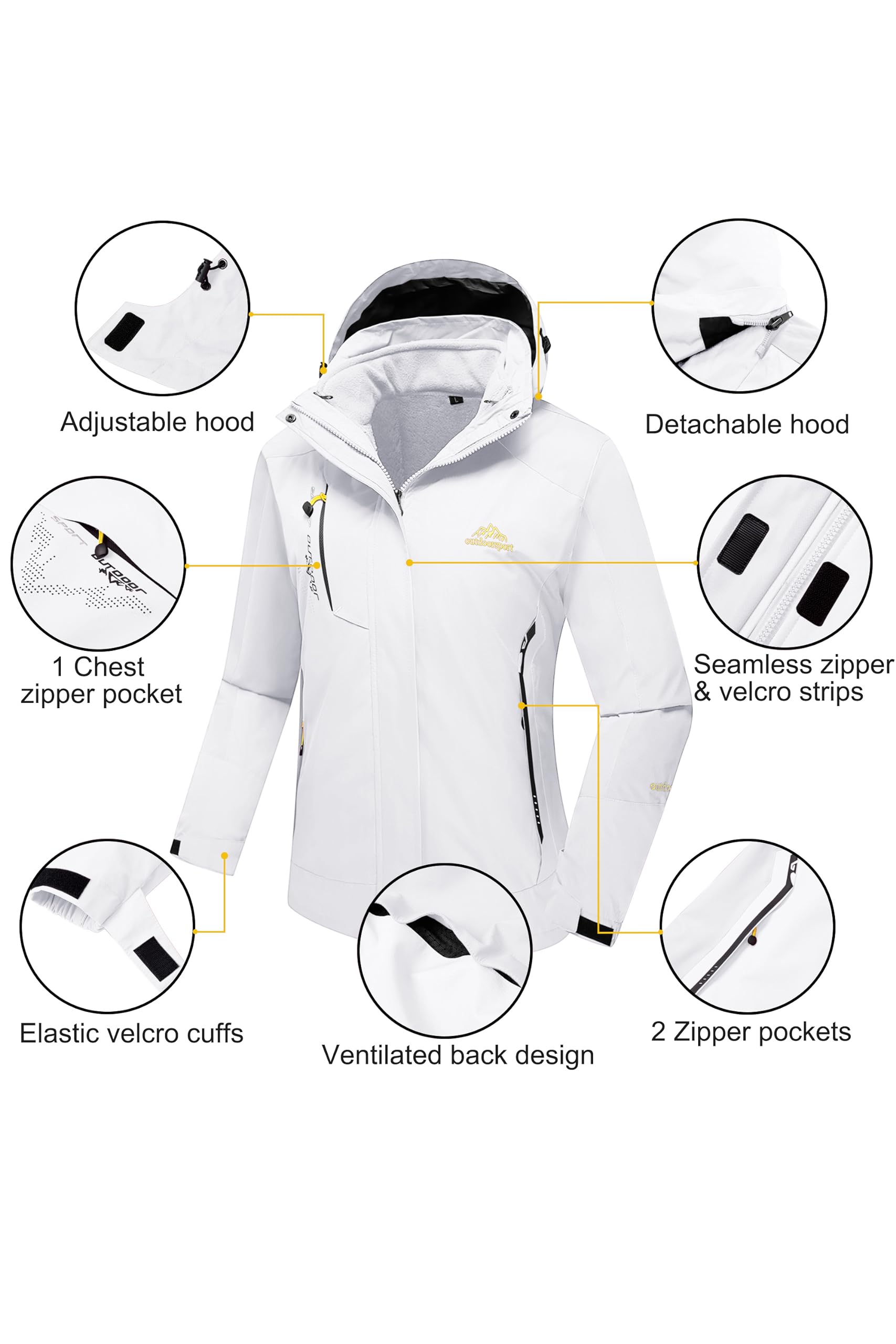 - VESTE POLYVALENTE 3 EN 1-Cette veste de neige pour femme se combine avec un manteau imperméable pour femme et une veste polaire intérieure. Les deux peuvent être portés ensemble ou par lui-même, de sorte que vous pouvez le porter presque toutes les saisons. La veste polaire intérieure douce et respirante fait une grande rétention de chaleur, manteau imperméable coupe-vent veste d'hiver vous gardera au chaud et à l'aise par temps froid hiver en plein air.