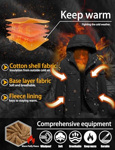Des détails: TACVASEN Veste militaire en coton d'hiver décontractée pour hommes épaissir manteau cargo à capuche