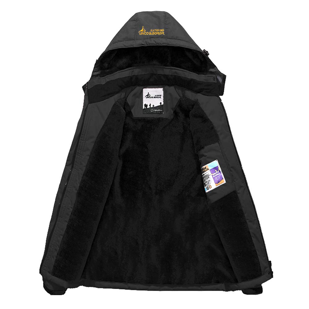 Homme Hiver Ski Pluie Chaud Polaire Imperméable En Plein Air Montagne Randonnée Coupe-Vent À Capuche Manteau De Neige, Noir, X-Large