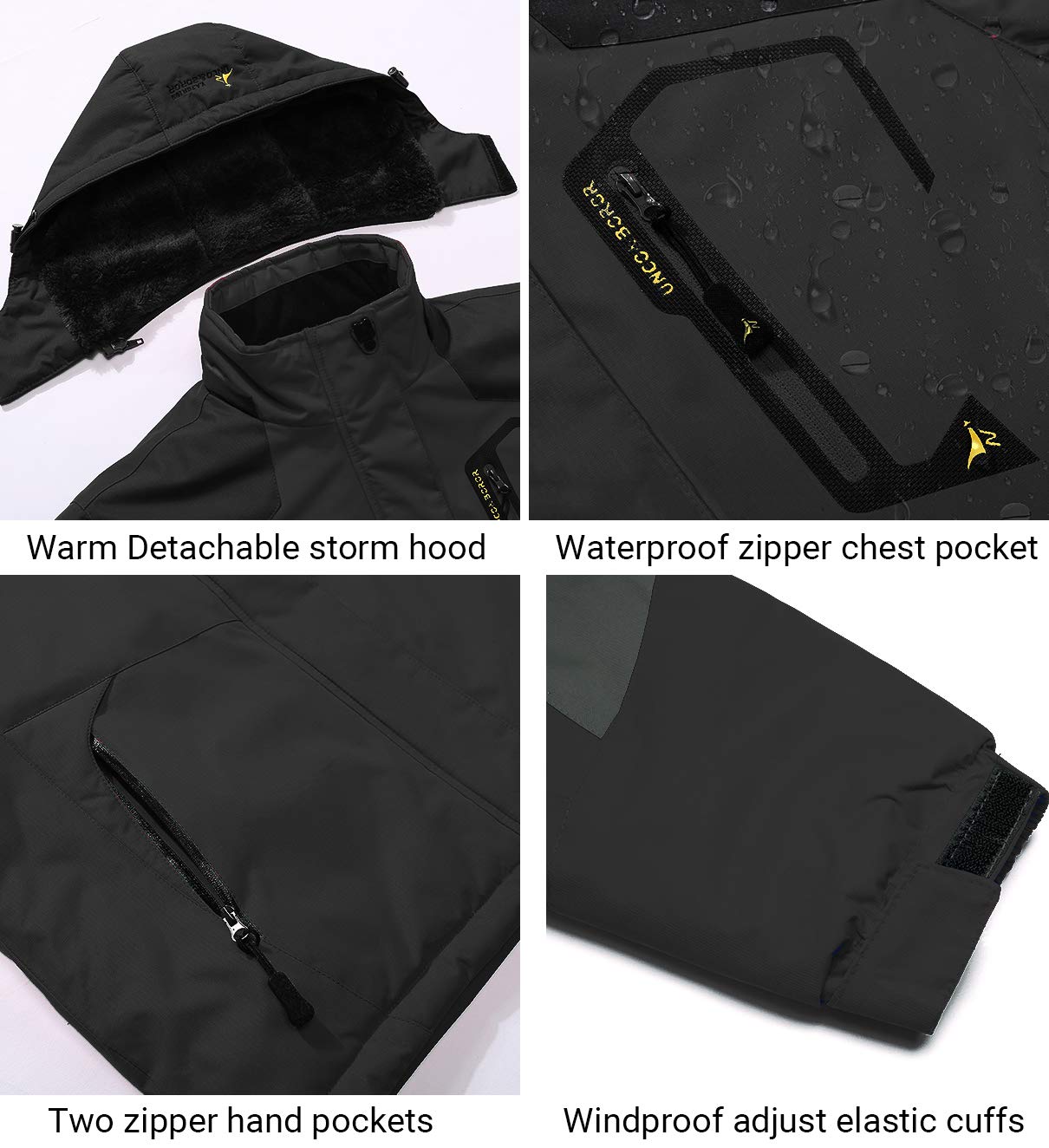 - Imperméable et séchage rapide: Le produit hydrofuge professionnel enduit, les tirettes et les poches sont toute la conception imperméable peut résister au mauvais temps de pluie, neigeux ou brumeux grand pour les sports extérieurs froids ou le travail extérieur en hiver.