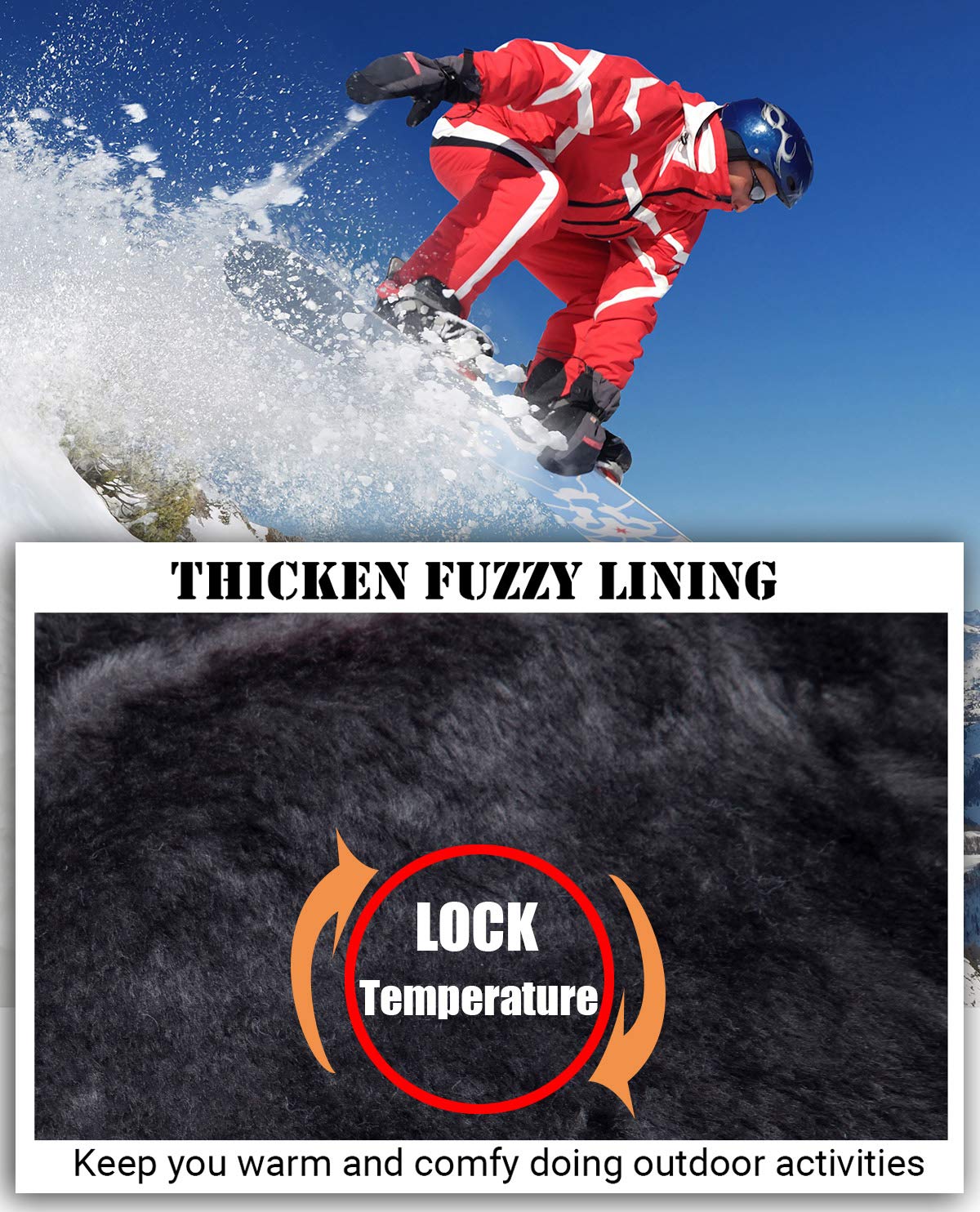 - Veste de neige chaude et durable: 100% polyester. Veste de ski chaude avec doublure polaire thermique douce garder le corps chaud et confortable par temps froid; le softshell viennent avec un tissu spécial haute densité et le revêtement sont très résistance au vent et la chaleur.